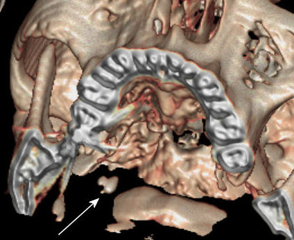 咽頭の異物の症例 :Axial1方向の撮影で再構築可能
