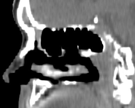 前頭洞炎の矢状断(前後を結ぶ線での断層画像)