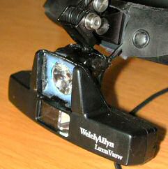 WelchAllyn社製の拡大鏡付きヘッドランプ(額帯鏡)"Lumiview"は、両眼での約1.5倍拡大鏡がついていて耳鼻科診察には非常に便利です。